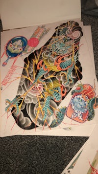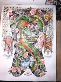 Dragon in green with fucken random designs